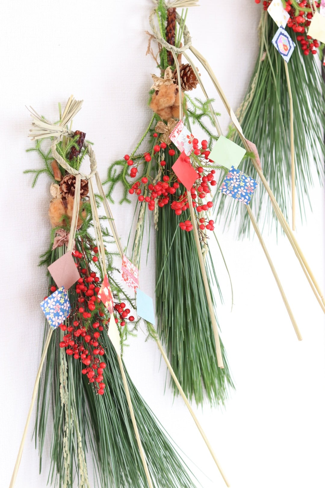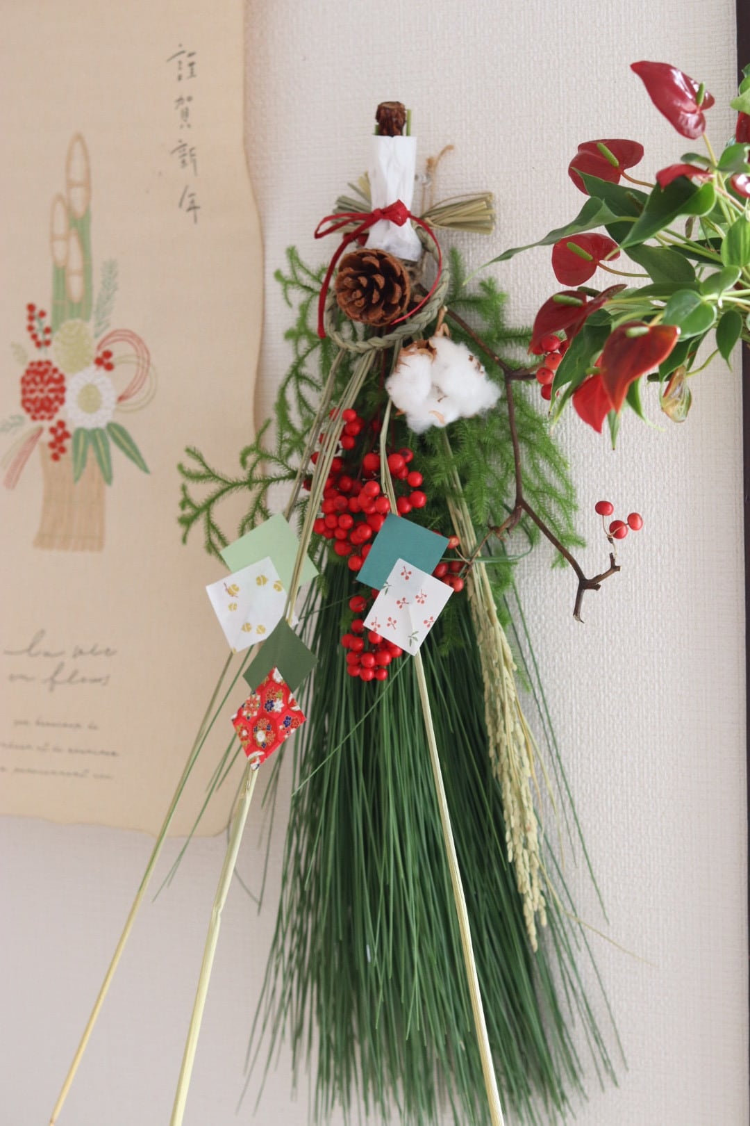 ↑新春の訪れを祝う、大王松・自然素材のお飾り! 自然素材を使用した伝統的な正月飾りで、お正月を華やかに演出します。