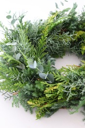 フレッシュな針葉樹(ヒムロスギ、コニファー等)ナチュラルな実物でつくるクリスマスリース。ワイヤーは使わず全て土に還る素材でつくるのがFlower noteのこだわりです。