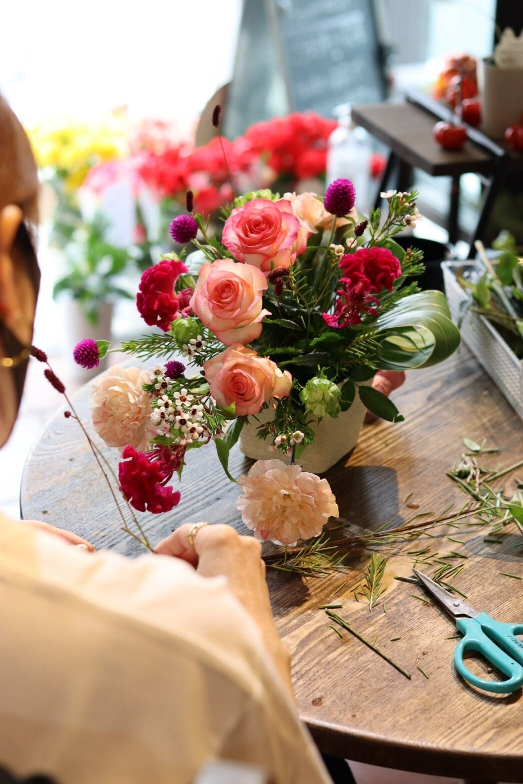 「きほんのき」は道具の使い方・お花の扱い方等、アレンジメントの基本や、Flower noteがお花に触れる際のエッセンスもお伝えするレッスンです。
