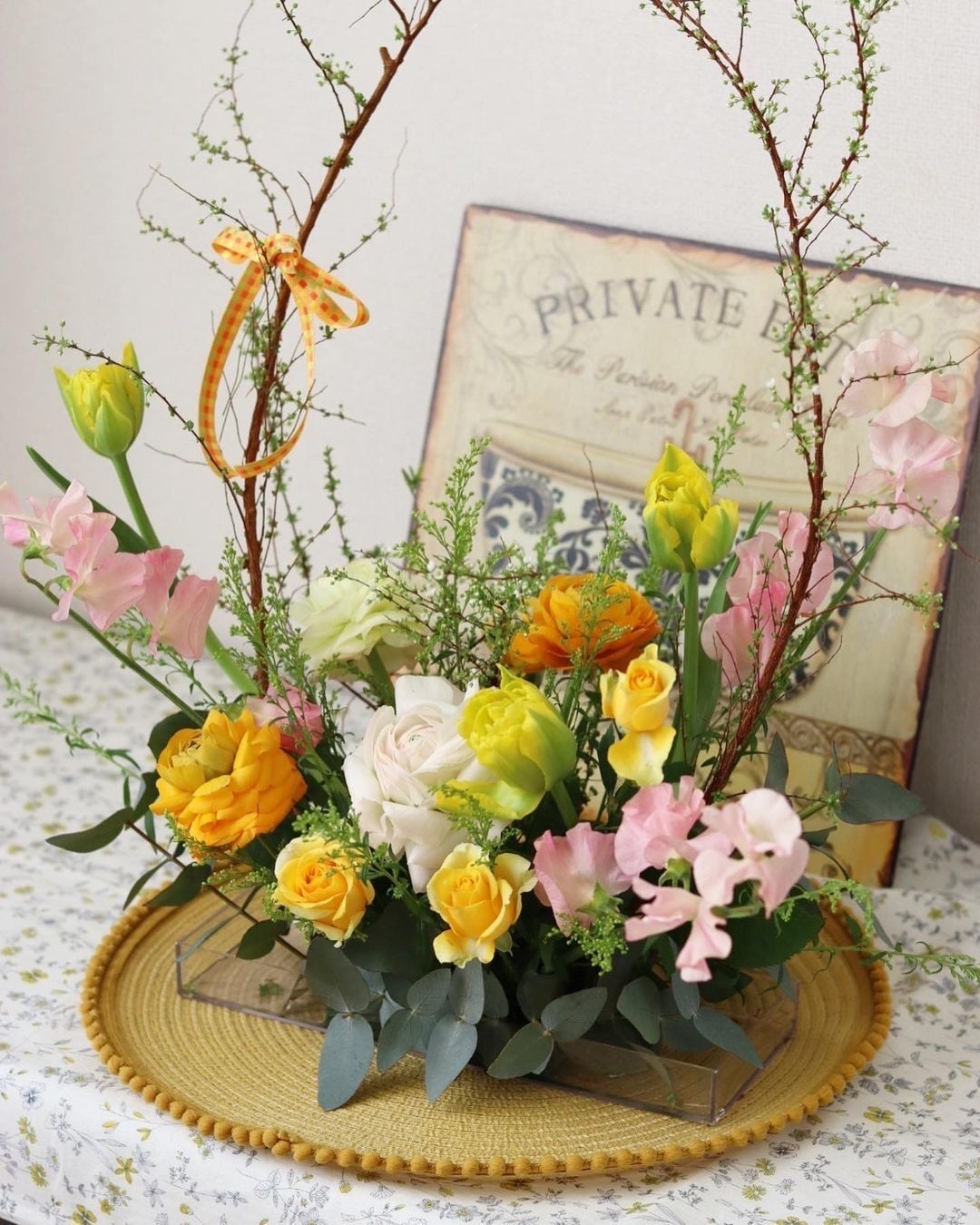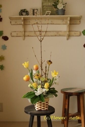 *画像は過去作品例です。1〜3枚目は〖初春の枝とイエローアレンジ〗4〜8枚目は〖スイトピーの春〗の画像です。